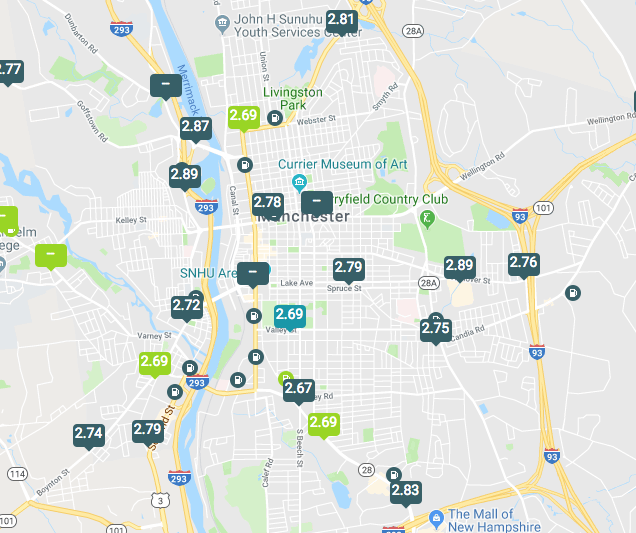 - New Hampshireโs average current price is $2.78 per gallon, which is 3 cents higher than one week ago. 30 cents higher than one month ago and 48 cents higher than one year ago.