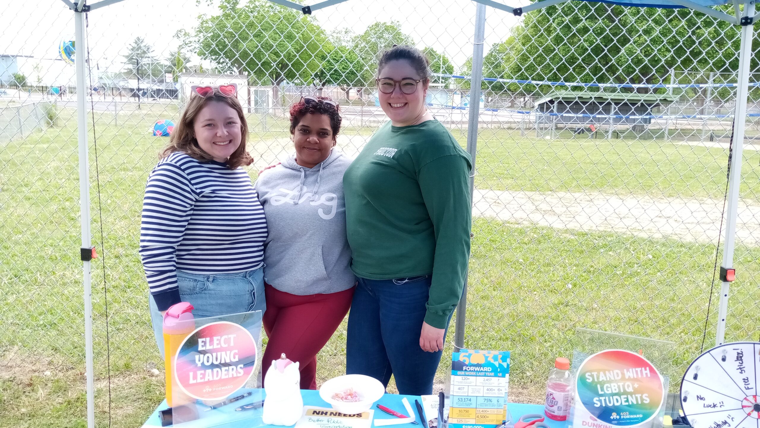 Manchester Grows, an event organizer, had set up potted plants which swayed in the wind while a drag performer danced in the background. Many different stalls were set up, including 603 Forward, NH Mutual Aid and Relief Fund, and Queerlective. Representatives from city government, including Mayor Joyce Craig, and Alderman-at-Large June Trisciani mingled with the crowd.