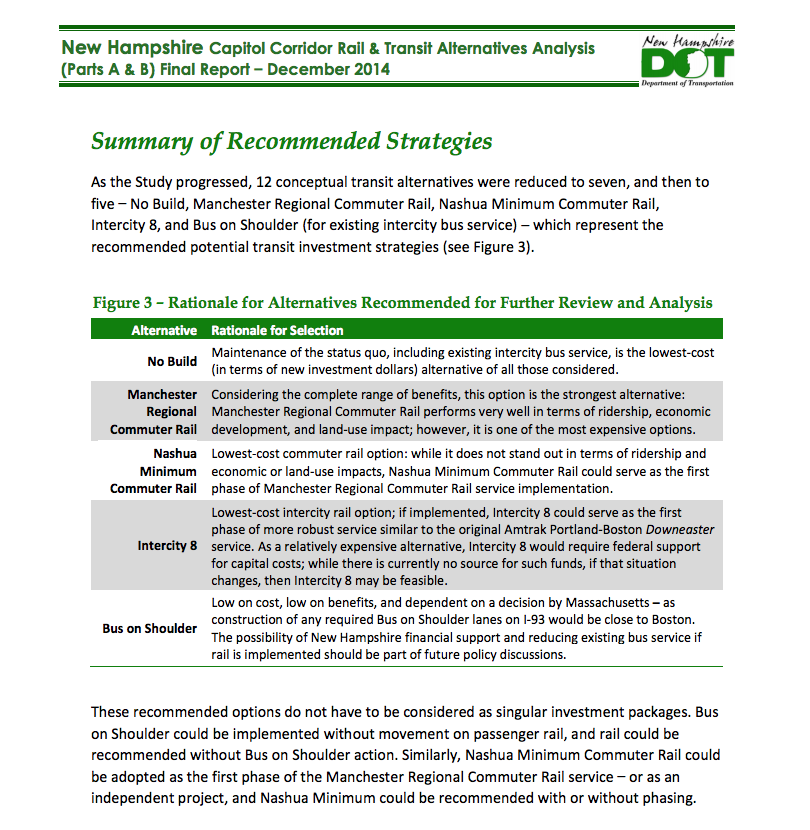 MANCHESTER, NH โ The final report for the NH DOT Capitol corridor Rail Study is in and uploaded here for your consumption. You can also link to it directly here.