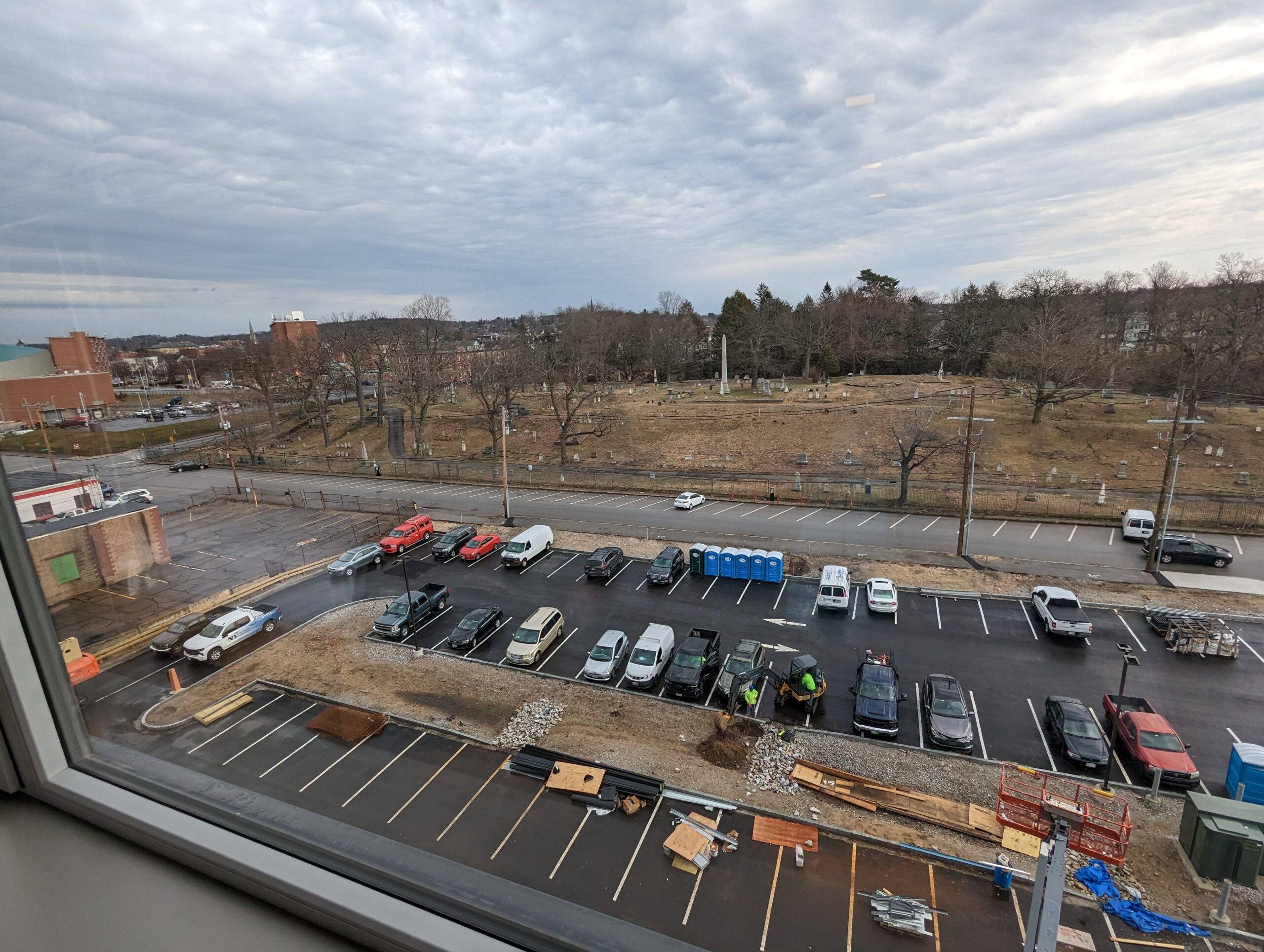Standing on the rooftop Dupont does a 180, her arm extended in a sweeping motion that leads the eye from construction bulldozers at Auburn and Canal, where more apartments are coming, to one of the oldest enclaves, historic Valley Cemetery, where those with rear-facing units will have a front-row seat for the dozens of turkeys that have staked a claim on that green space.