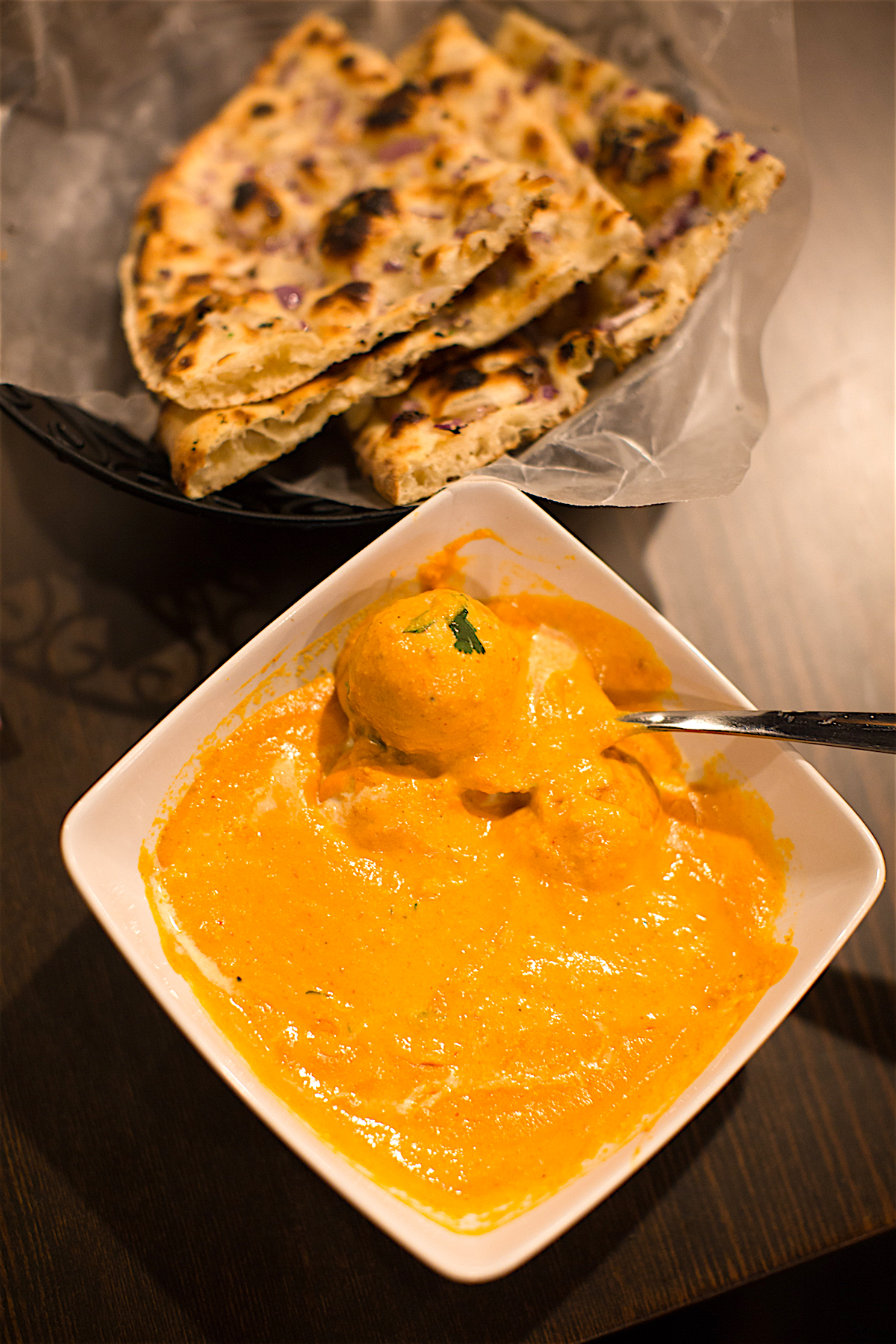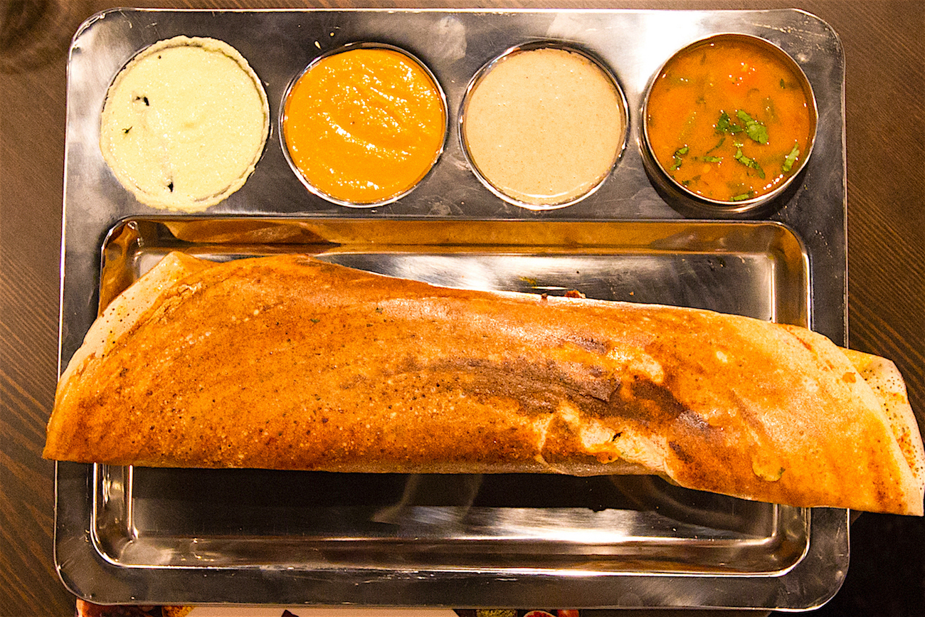During a recent visit to Ritu’s Spice Utsav with my friend, Krithika Mahalingam and Mark Irivinti as my food translation guides, I got to sample a number of dishes – from the first bite of what was probably my favorite dish, raj kachori chaat – a traditional street food for which Ritu insists on fresh-made dipping sauces – to the sweet ending that included syrupy bite-sized gulab jamun, and a warm dish of vellam pongal with toasted cashews. In between I discovered the joy of the red chili “gun powder” seasoning and beet root in the crepe-like adai dosa, the just spicy enough cut mirchi (stuffed jalepeño appetizer) to the various versions of naan, a flatbread staple used for dipping and transporting savory bites, from plate to mouth.