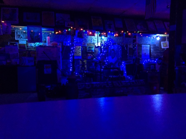Apple played alongside his straight man and harp player, David, who was in a wheelchair and just learned to play the harmonica seven months back by practicing four hours a day. Apple played us some delicious Junior Kimbrough and Robert Johnson and Bukka White. He schooled the crowd on the history of the blues, how it was played, why it was played, where and when it was played. It was terrific, both educational and entertaining, with the style and charisma of Mr. Apple shining bright alongside the baby blue Christmas lights strewn throughout the juke.