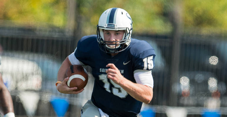 RINDGE, N.H. – The cylinders are clicking for what looks like a reborn Saint Anselm football squad, churning out a second straight victory with a 50-10 statement win over Franklin Pierce.