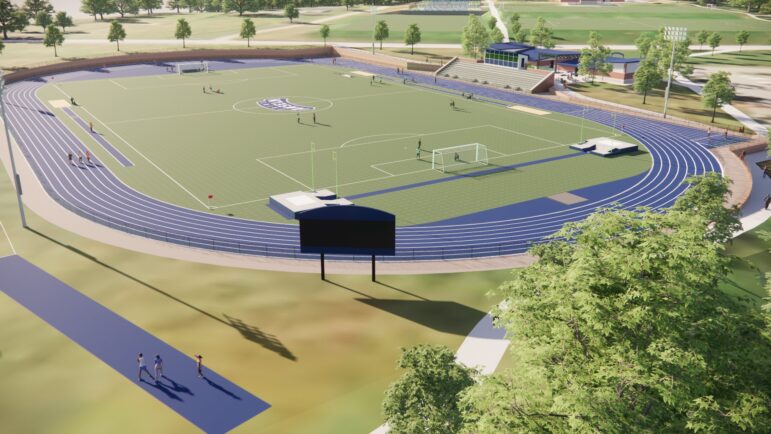 The announcement came as part of a tandem announcement unveiling a new track and field complex with an eight-lane track, synthetic turf field, lightning and other amenities.