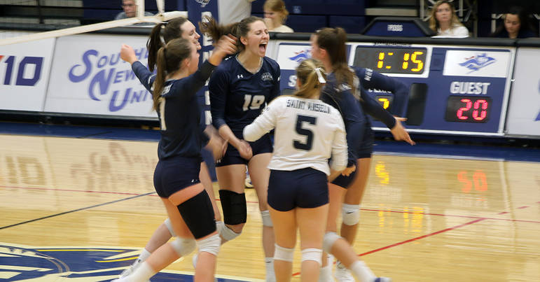 The Hawks are now tied 4-4 in the quest for the Queen City Cup thanks to a three-set sweep against SNHU on Tuesday.