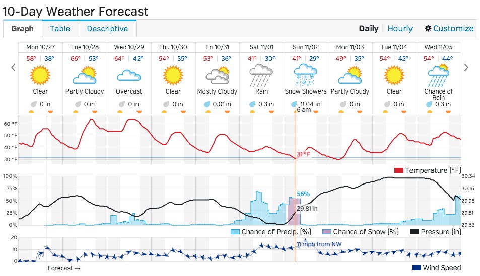 Screen shot 2014-10-27 at 3.32.09 PMSuch is the case this week, as seen in the 10-day forecast via Weather Underground.