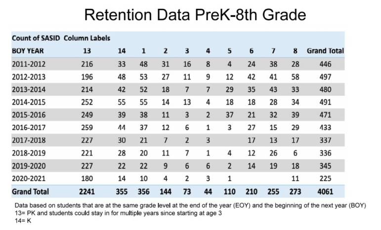 Those years were ultimately included in the study due to an analysis of the costs of retention to the school district, which cost a total of $3,375,000 during the 2019-’20 school year and $55,740,00 over the past ten school years.