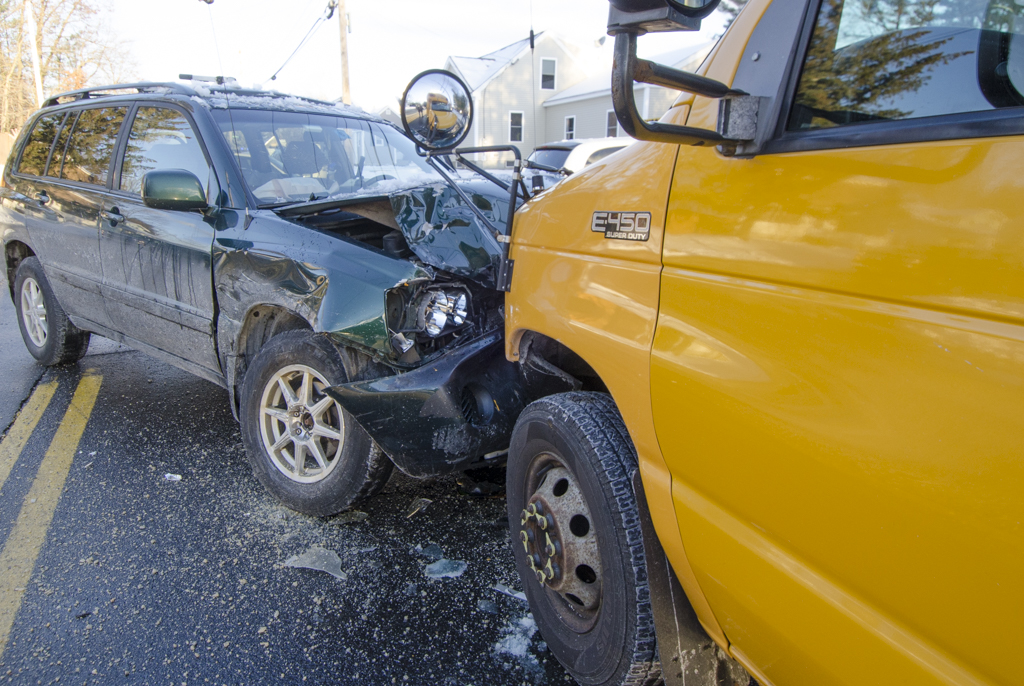 The driver of an SUV was transported to Catholic Medical Center after sliding into the path of an Easter Seals school bus at College Avenue and Mastย Road, ย hitting it head on.