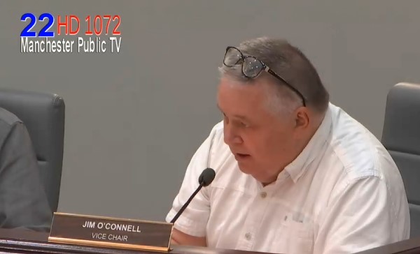 BOSC Vice Chair Jim O’Connell on Aug. 25, 2025. Screenshot/Manchester Public Television