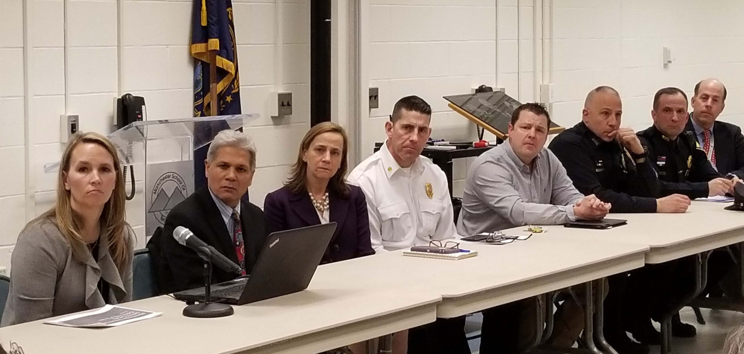 MANCHESTER, NH โ Fourteen city officials led a forum on school safety at Manchester School of Technology on March 20. The panel was chaired by Jennifer Gillis, the Principal of Southside Middle School, who leads the emergency planning group for the Manchester School District.ย Panelists represented the school district as well as, the city’s fire and police departments.
