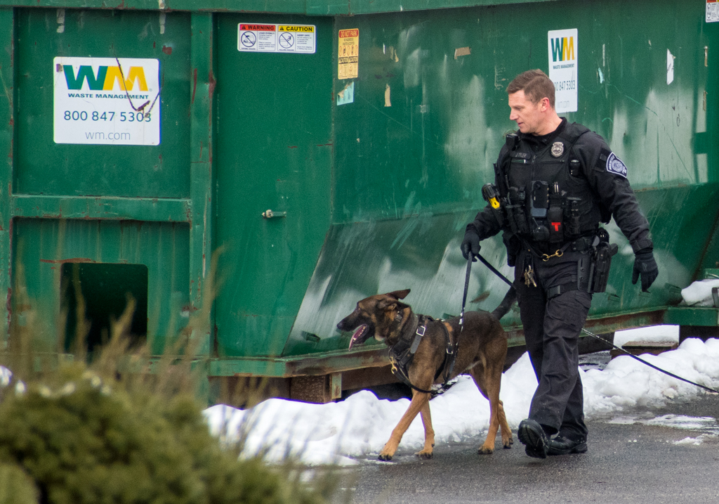 Several officers searched areas of South Willow Street, Huse Road, Perimeter Road, and the wooded areas where there are known homeless camps, continuing the extensive search that spanned several hours Monday and included support from NH State Police.