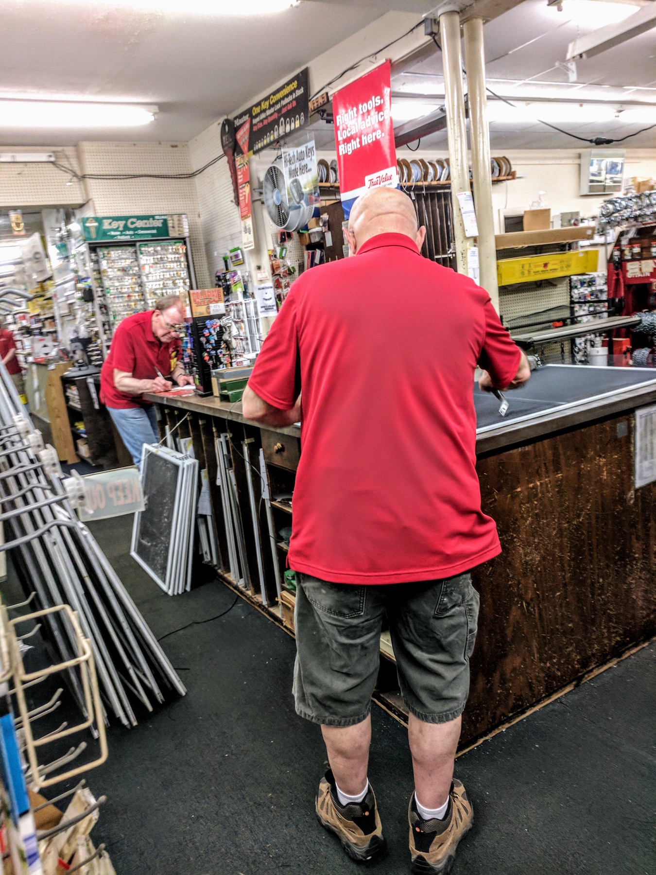 “I need screens,” I said to one of the men, who had stopped what he was doing to take a look. Two more guys in red shirts came over to consult.