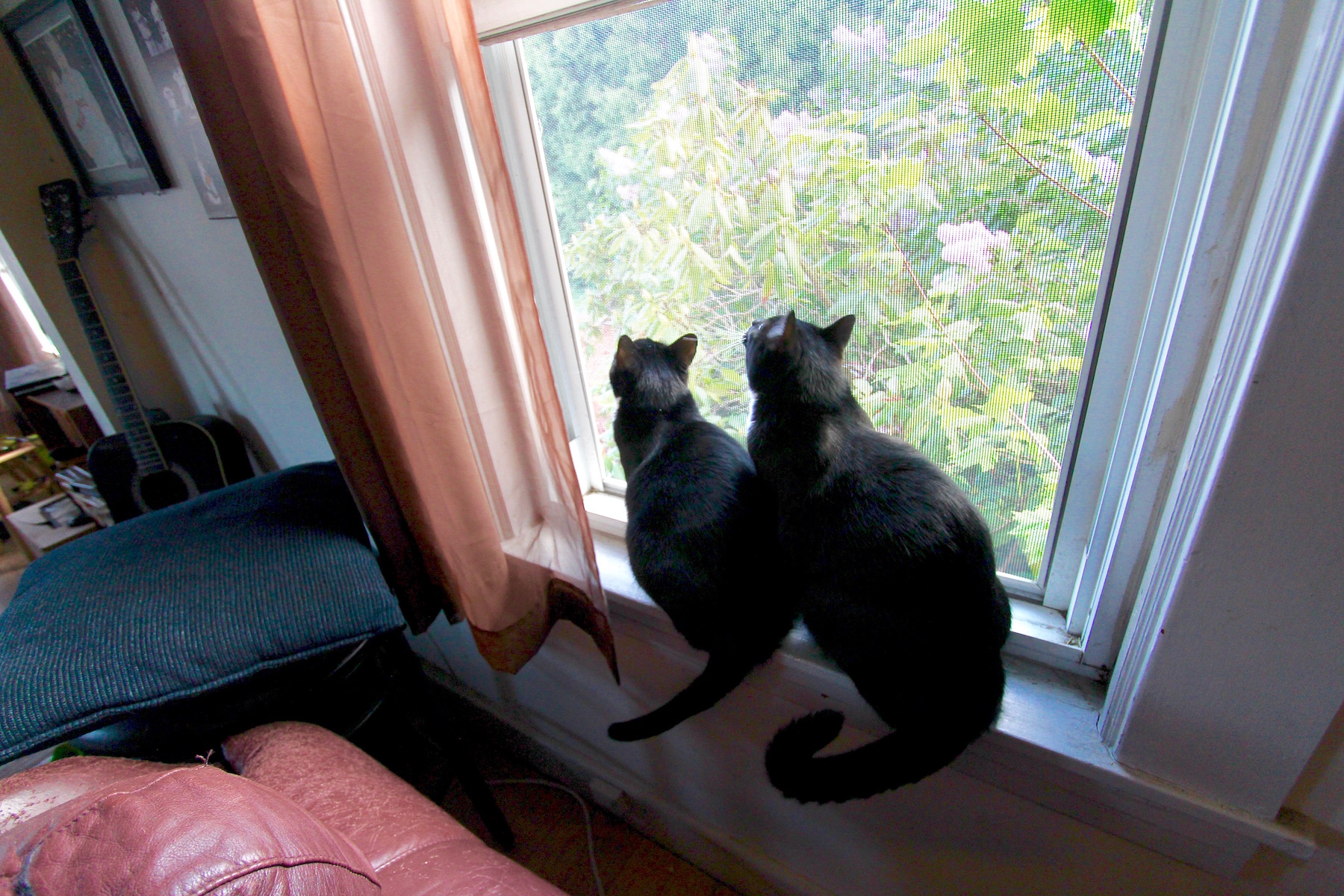 Bella and Luna were super excited to have a front row window sill seat for bird watching.