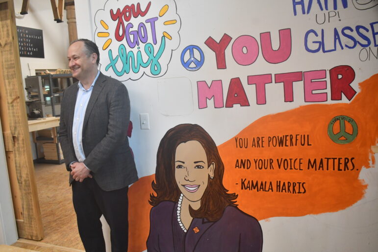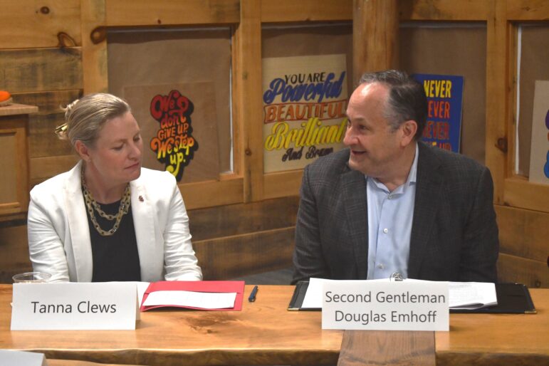 Emhoff began the trip with a tour of the space, known regionally for providing young girls over the past 20 years with hands-on experience and camaraderie through programs that teach them woodworking, STEAM skills and other activities. Emhoff was then joined by local leaders for a private roundtable discussion.