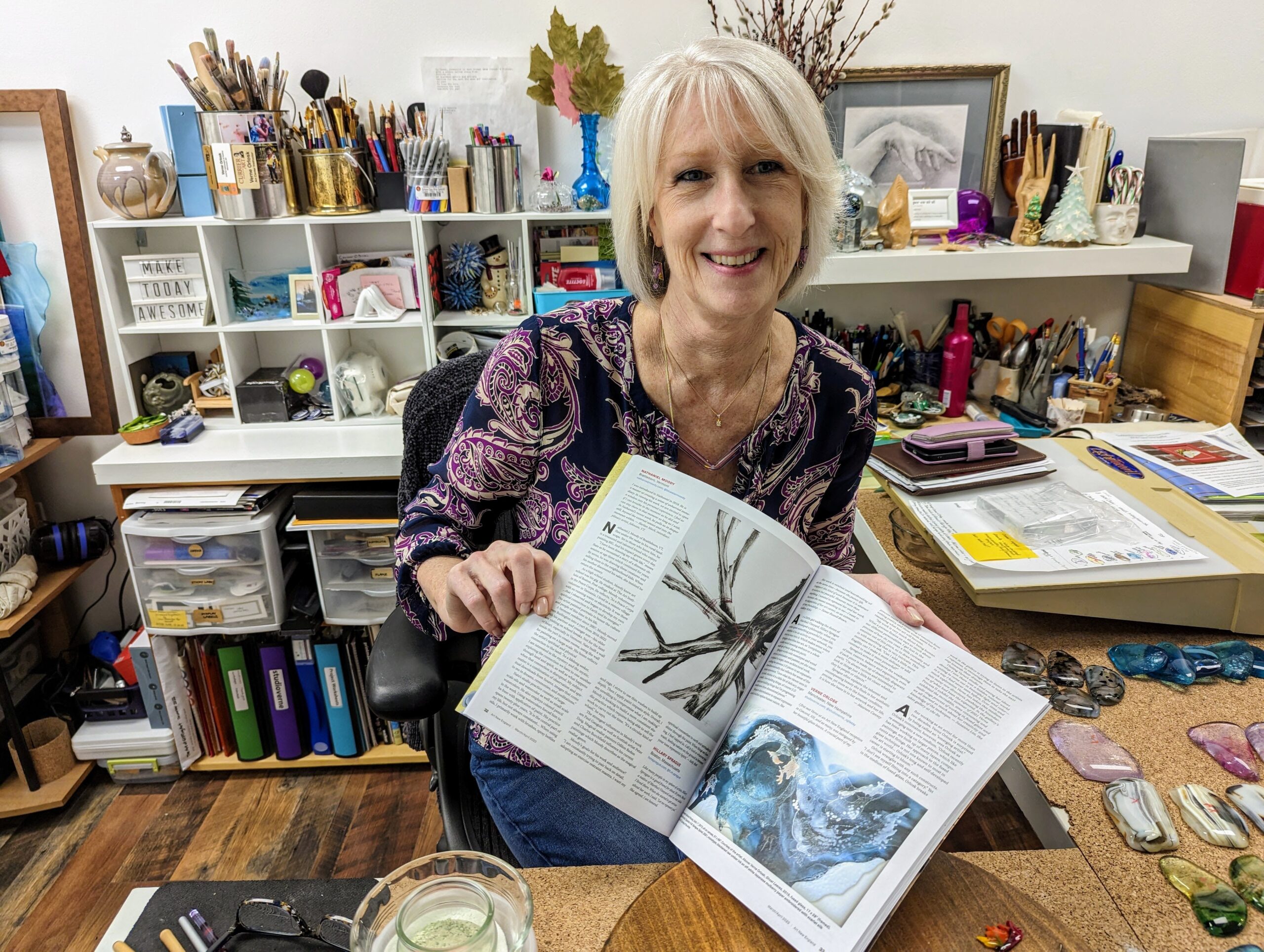 But the urge to have a space of her own eventually led her away from teaching to finding herself as an artist in her own right. She landed on Hanover Street, where Studio Verne, a street-level storefront, provided a balance of gallery and workspace, and room enough for occasional classes.