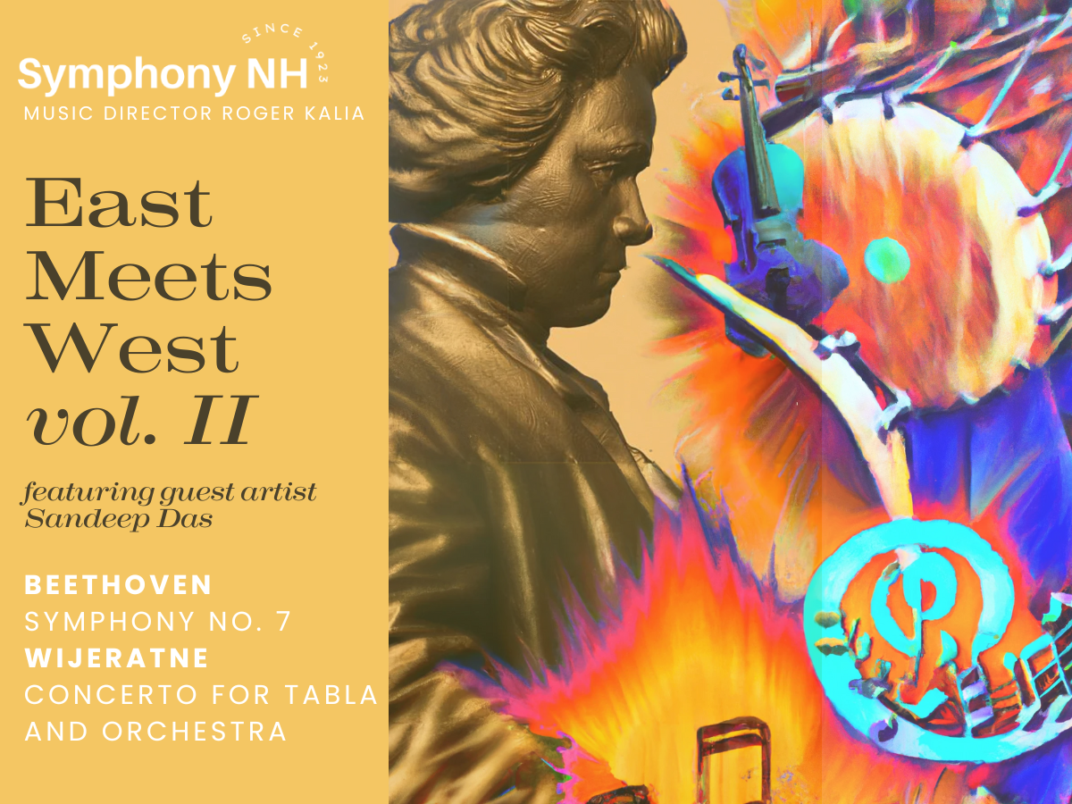 NASHUA, NH – Kicking off Symphony NH’s 2023-24 Season on Sept. 23 is East Meets West, Vol. II, a fusion of Eastern and Western music featuring Grammy-winning tabla player Sandeep Das, member of Yo-Yo Ma’s Silk Road Ensemble, who joins SNH and Maestro Roger Kalia in the SNH and New Hampshire premiere of Dinuk Wijeratne’s Concerto for Tabla and Orchestra.