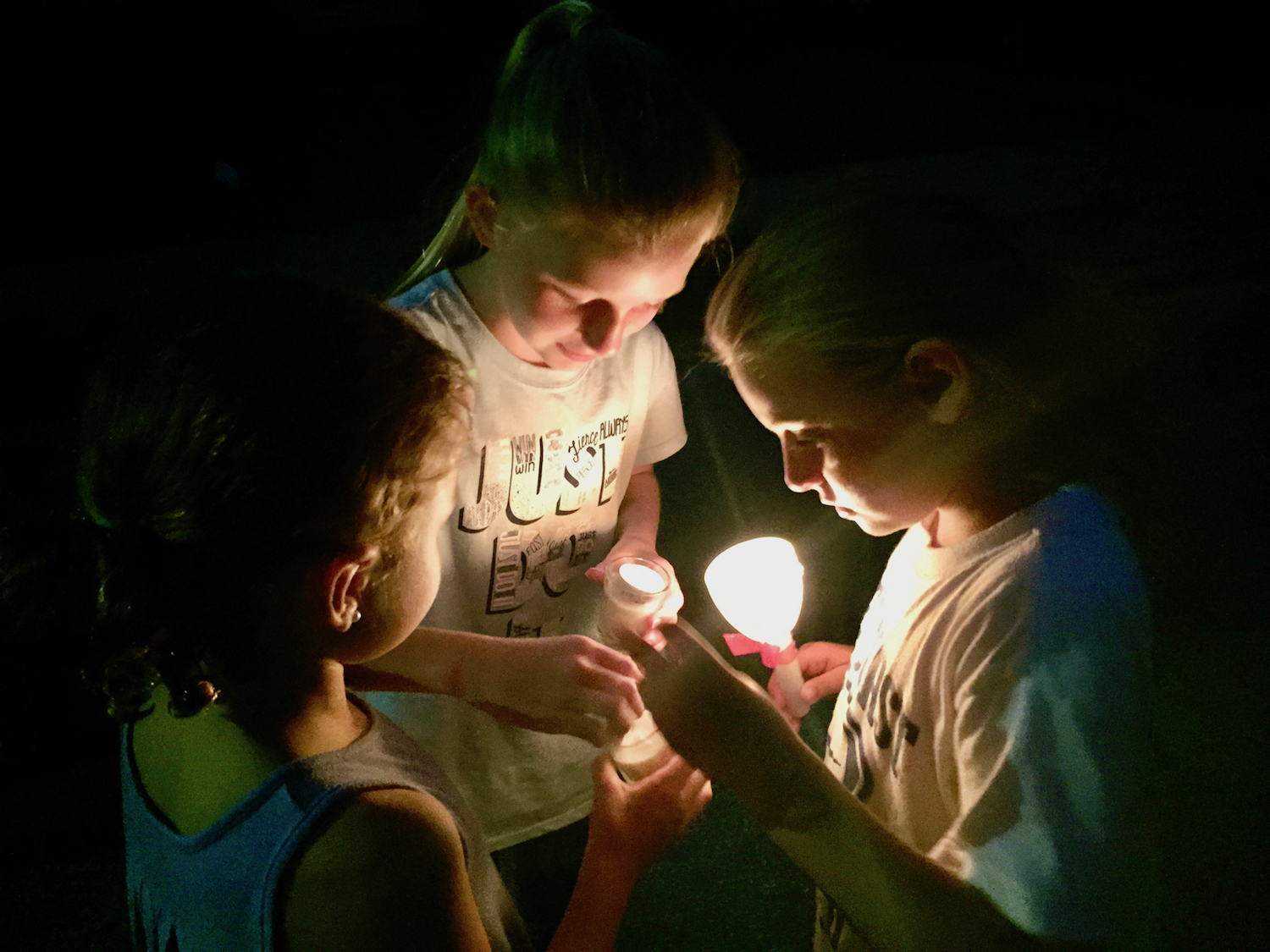 A trio of girls light candles in preparation for a neighborhood vigil held Sept. 3, 2015, days after Denise Robert was gunned down on Ray Street. Photo/Carol Robidoux