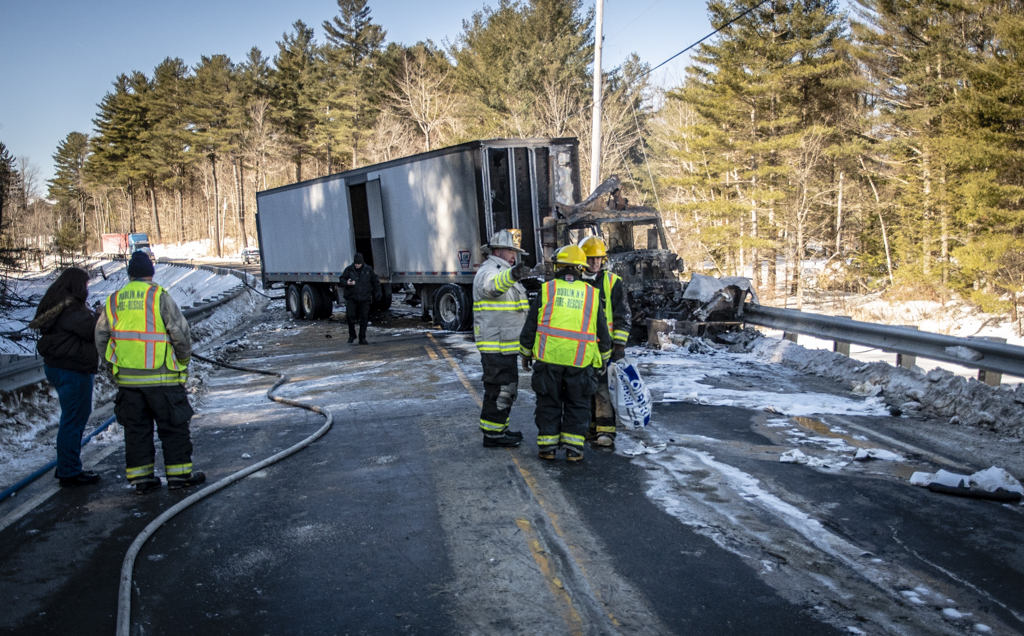The driver of the tractor-trailer was identified as Jean Morency, 66, of Nashua. Heย was transported to Monadnock Community Hospital with minor injuries.
