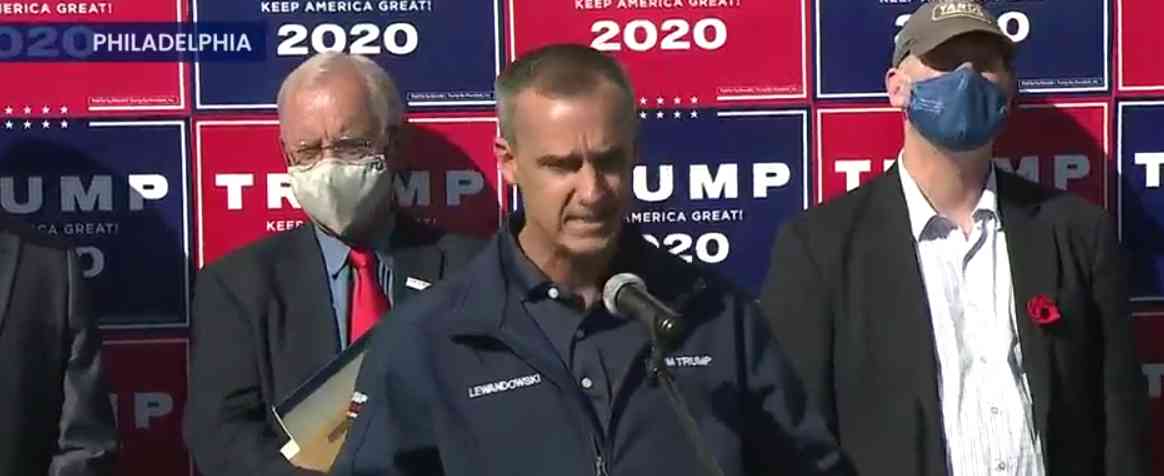 A press conference in Philadelphia by Trump’s attorneys and Trump campaign advisor, Corey Lewandowski of New Hampshire, was scheduled at about the same time news outlets declared Biden the projected winner. His remarks included what he termed a “concrete example” of voter fraud, in which a woman who had died prior to the election had a ballot mailed in and counted.
