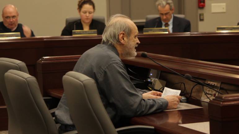 Glenn Ouellette, a resident who is advocating for public bathrooms, addressed the Board of Aldermen. Photo/Eli Maroney