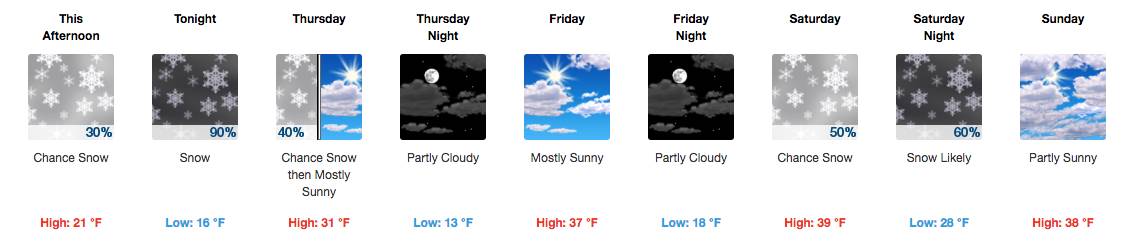 According to meteorologist Chris Legro at the National Weather Service in Gray, Maine, we will see 2-4 inches of snow beginning late Wednesday evening, between 8 and 10 p.m., which will continue into the morning but likely ending before the morning commute.