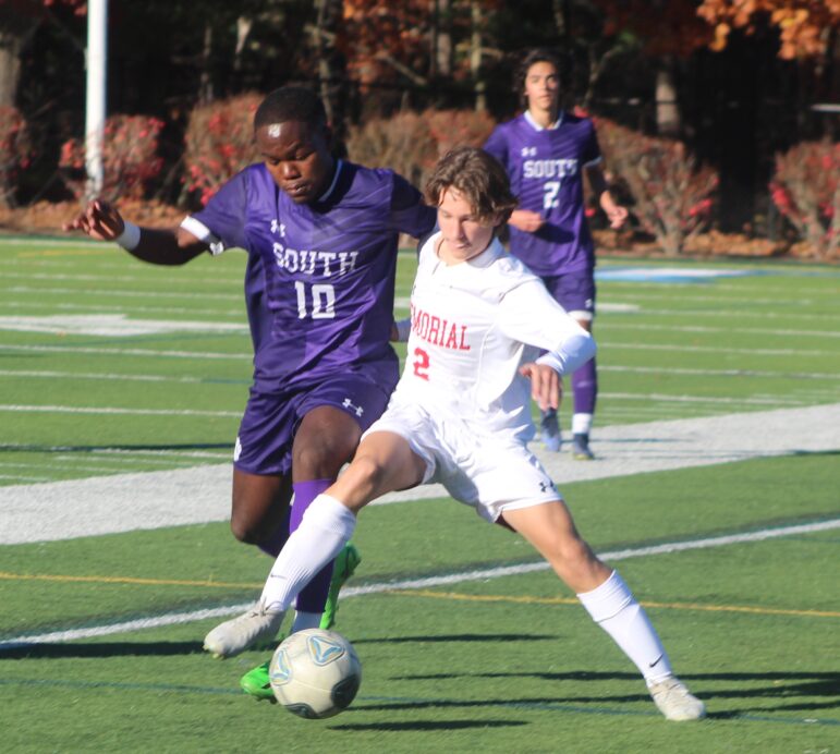 Sunday’s quarterfinal game was tied at 1 when a Memorial foul at midfield that resulted in a yellow card for Crusader Tyler Telge led to a South free kick 10 minutes into the second half.