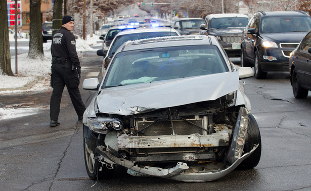 Officer Pete Boylan responded to Elm Street at West Baker Street for the two-vehicle crash involving a 2004 Ford pick-up truck and a school bus. The school bus, operated by Lacy Umling of Manchester, was carrying 15 Southside middle school students.