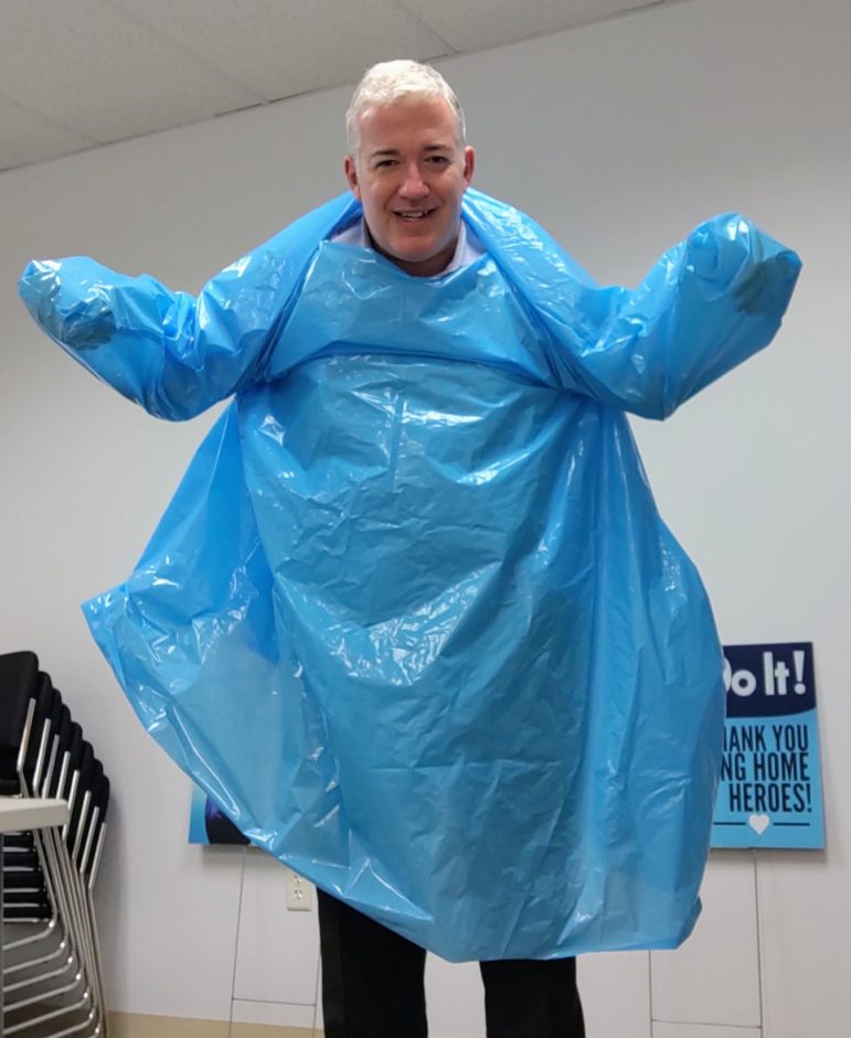 Williamsโ organization, the NH Health Care Association, early on alerted the media to the federal governmentโs shortcomings in the provision of PPE in New Hampshire. Williams himself posed in a gown without armholes to demonstrate the poor quality of the supplies being provided.