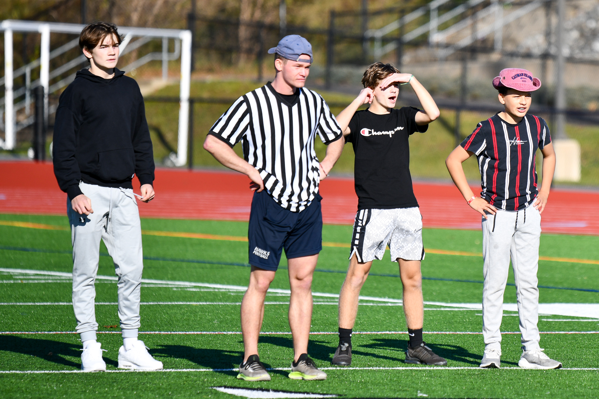 Collin Beaulieu, Referee Volunteer – Defensive Coordinator, Coach Ray Portu, Brandon LaPorte, and Brady Harrison