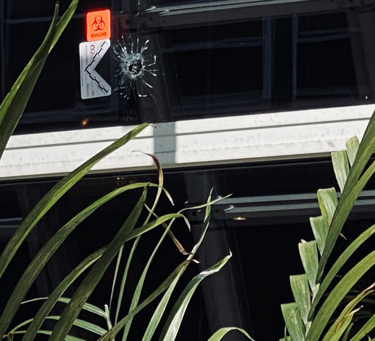 Saturday afternoon detectives were at the 36 Lowell St. restaurant, up on ladders marking the spots where the bullets struck the building. ย Two red squares marked bullet holes in windows while the other eight were affixed to the building.
