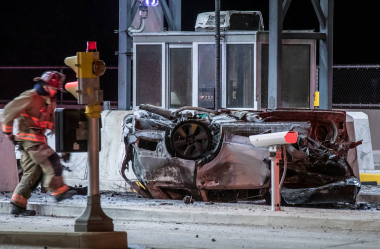 HOOKSETT, NH — One person perished in a fiery crash at the Hooksett Tolls early Friday.