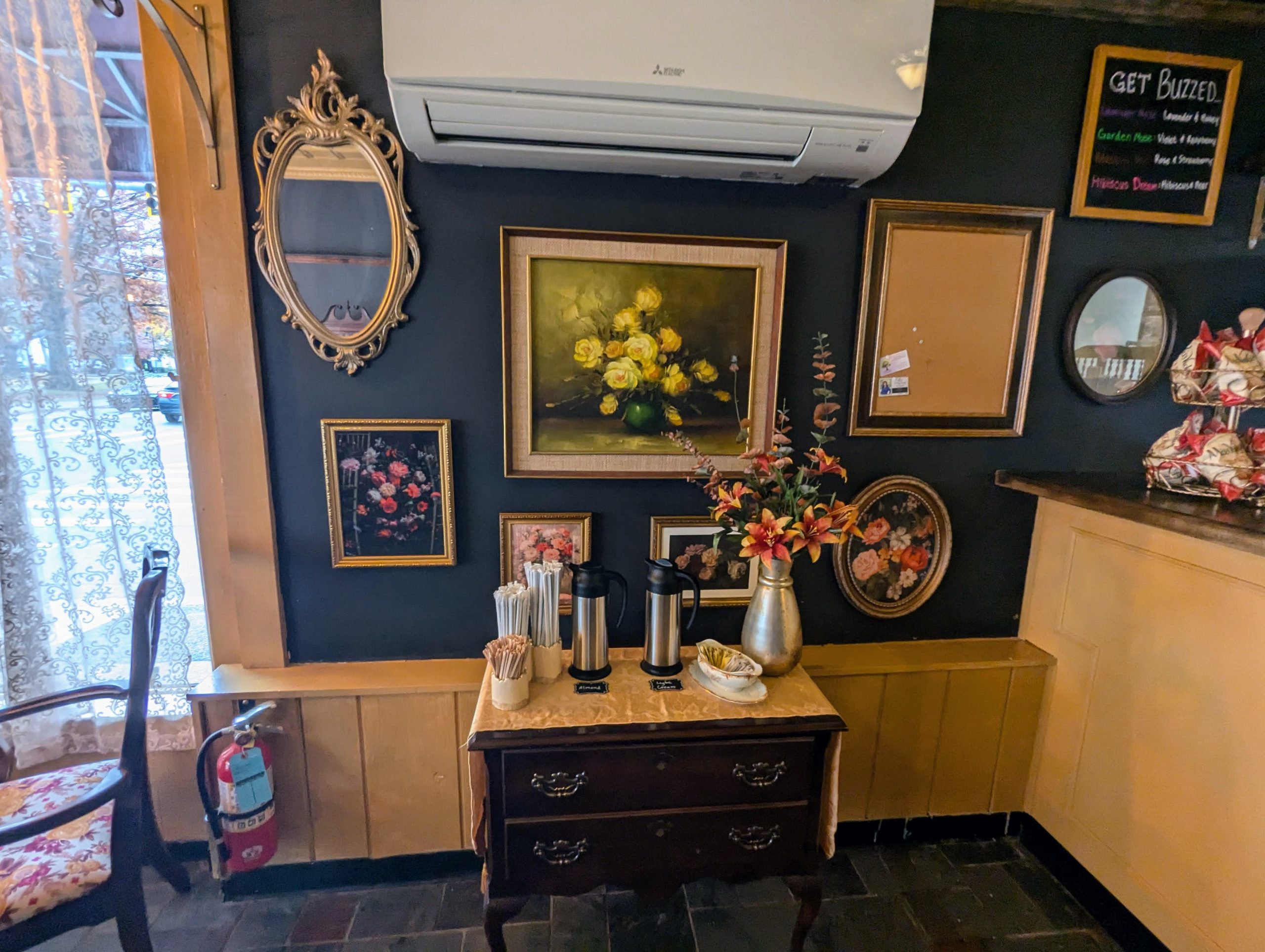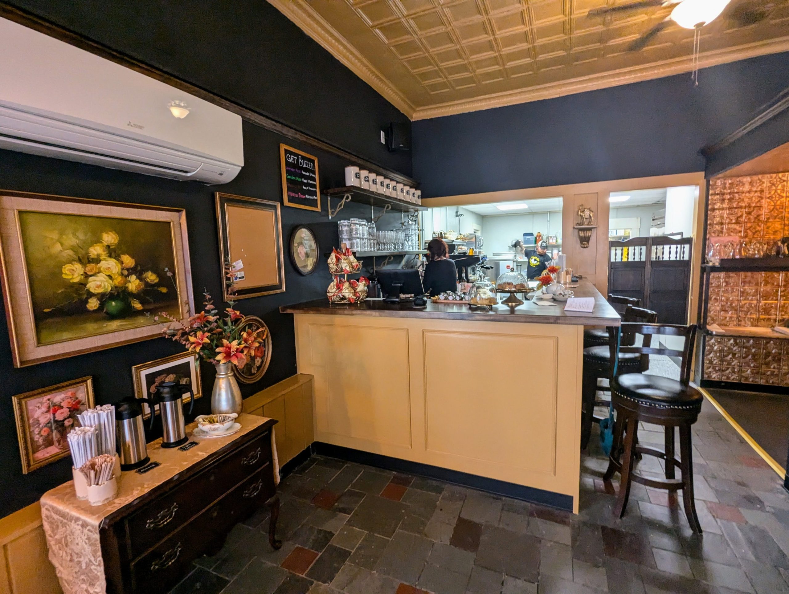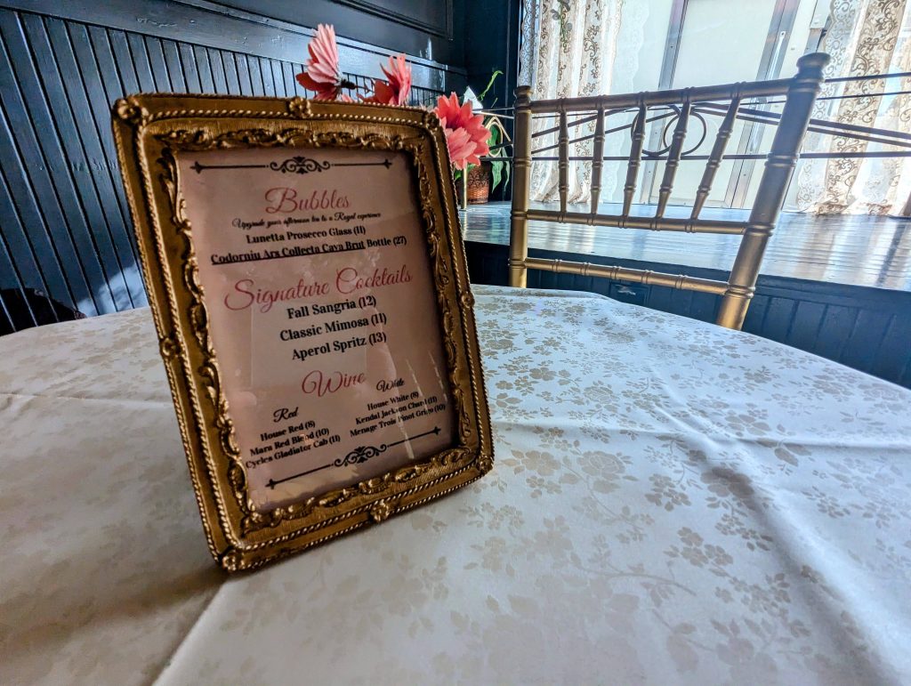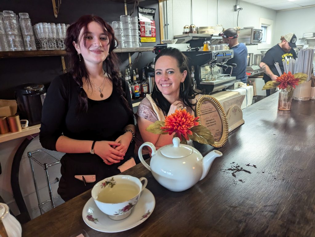 She spent those months collecting lovely tea cups and glassware from Goodwill stores around the state, and recruited some help in the kitchen โ one of her besties, Amanda Persijn-Spooner, owner of Big Kahunas in Merrimack, and she was willing to come during her off hours to help get things going by creating the menu. She also hired Kellen Jamison for cooking the food, and daughters Lucy and Gigi are pitching in as needed.