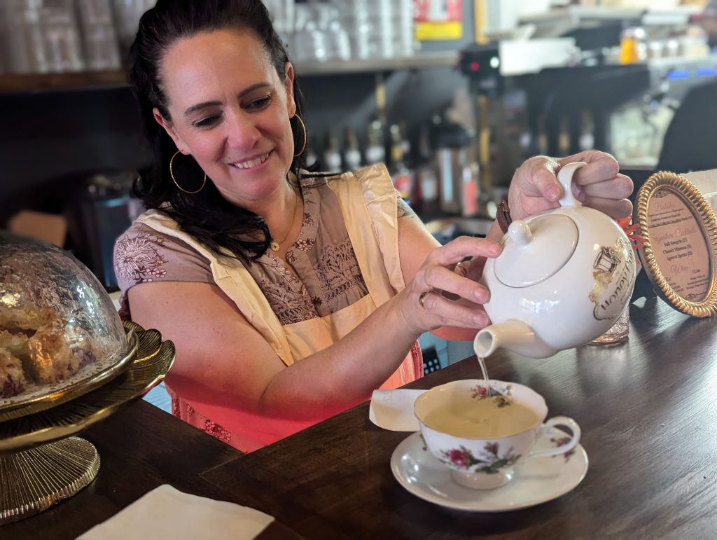 Being the brains of the operation is where Witt shines – because not only does she not cook but she didn’t know a lot about tea โ at first. But she has done a lot of research, and is learning all the time.