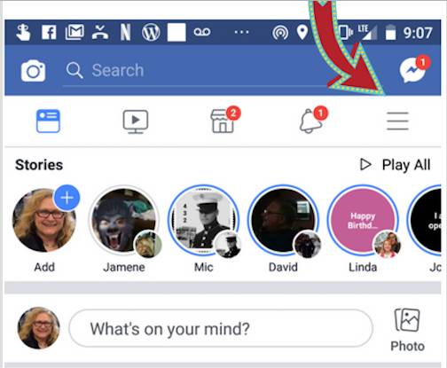 Via mobile: Log into your Facebook account and clickย on the three horizontal lines on the top right of your screen:
