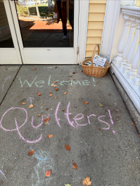 Since finishing my first quilt, I signed up for two local beginner quilting classes at Night Owl Quilting in Goffstown (soon moving to a new location), and had the pleasure of meeting a diverse group of beginner quilters from all over the state as we learned from an expert sewist and retired sewing teacher. Back at Patches on Candia Road, I began purchasing new fabric collections and spent two weekends at an open โsit and sewโ where, for a small fee, I was able to work on my quilt projects with the benefit of an ironing and cutting station all ready to go. With enthusiasm, I brought a sticker that said โMake More Quiltsโ to put on my new sewing machine and told the cashier, โI just canโt get enough of this. I want to be in the club – the quilting club.โ โAre you a guild member?โ they asked. What? There is a club for this kind of thing? I just had to learn more.