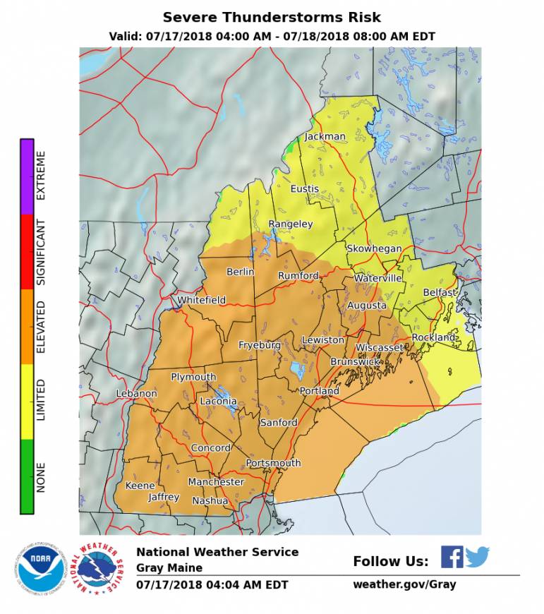MANCHESTER, NH โ The National Weather Service has issued a severe thunderstorm warning that remains in effect until 8:45 a.m. for our general area, followed by a flash flood watch, which goes into effect at noon.