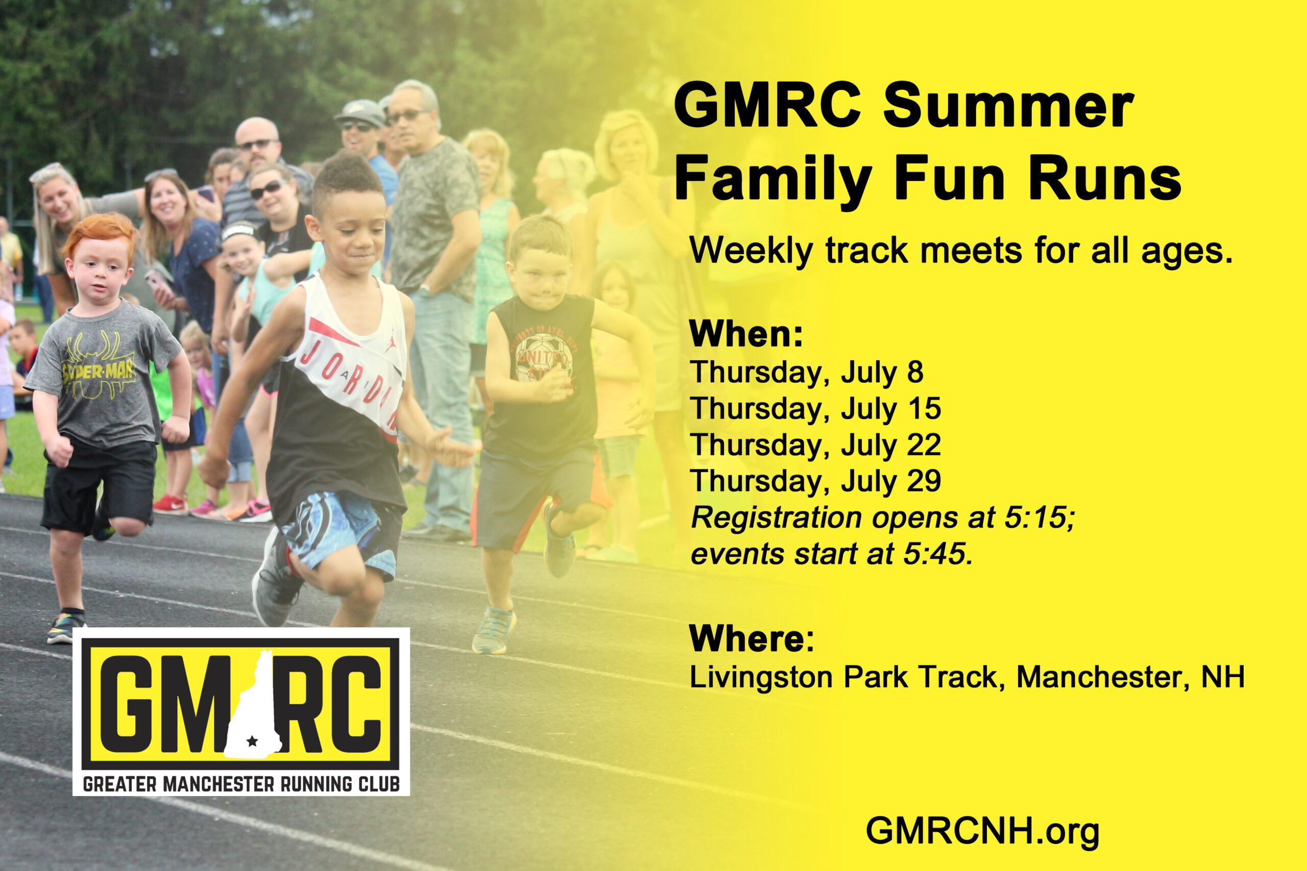 MANCHESTER, NH โ The Greater Manchester Running Club invites runners of all ages to participate in our annual Summer Family Fun Run Track Meet series.