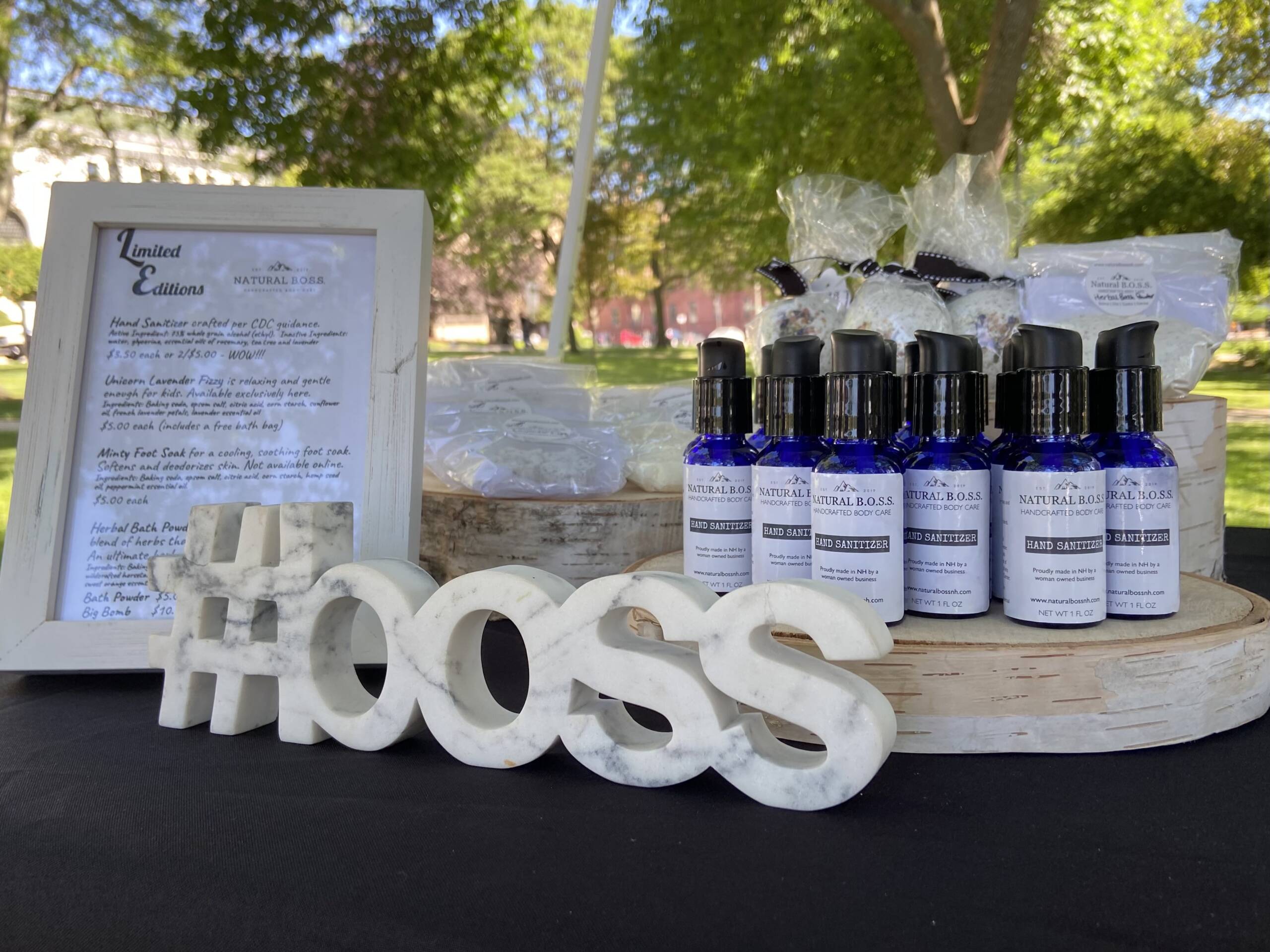 A newcomer to the market this year is Alicia Rainville, who handmakes body care products for her business, Natural BOSS, which stands for balm, oil, soak, and salve. Rainville is a home herbalist and her products are all-natural.ย