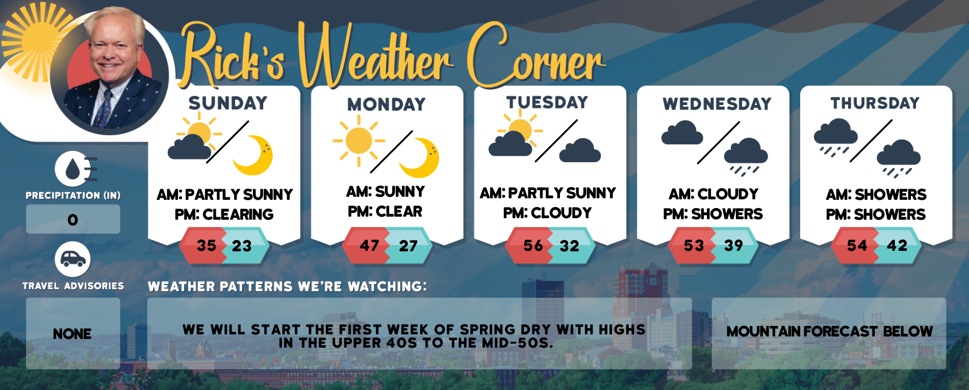 We will start the first week of spring dry with highs in the upper 40s to the mid-50s.