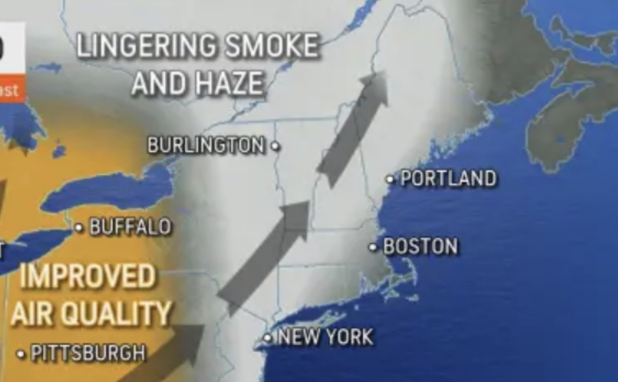 The 4th of July weekend breakdown: Some rain today with scattered showers and thundershowers tomorrow and Independence Dayโฆbut not expecting a washout with many hours of dry weather too. Excessive heat is not expected but it will be quite humid. Also, this weekend the lingering smoke and haze from forest fires in Canada and with humidity levels likely to climb, the air is unlikely to become pristine, and some haze will persist.