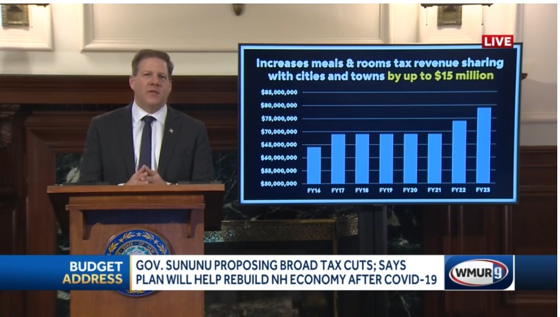 Sununu proposed an additional $15 million from the rooms and meals tax receipts go to municipal revenue sharing.