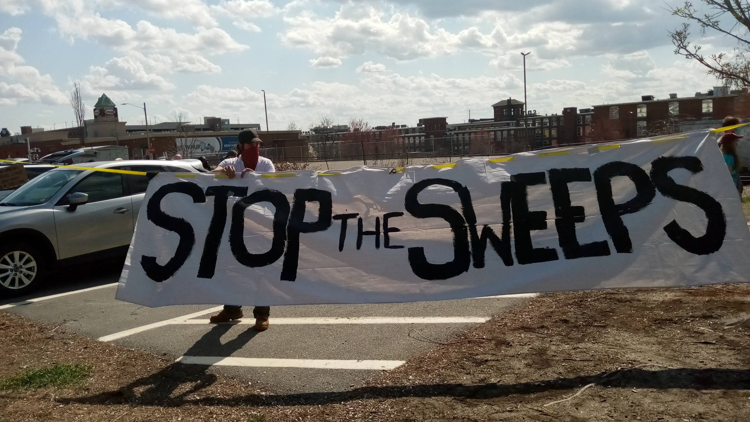 MANCHESTER, NH โ On April 8, police arrived at a homeless encampment in force with an unequivocal message: everyone there needed to leave. Those living in tents were told they had one week to pack everything and go somewhere else. The camp, called Firestone, is so named due to its proximity to Firestone Complete Auto Care, which is also near Northeast Delta Dental Stadium. The evacuation order was carried out by police at the behest of Firestone, which is private property, according to a statement provided by the corporate office in Tennessee.