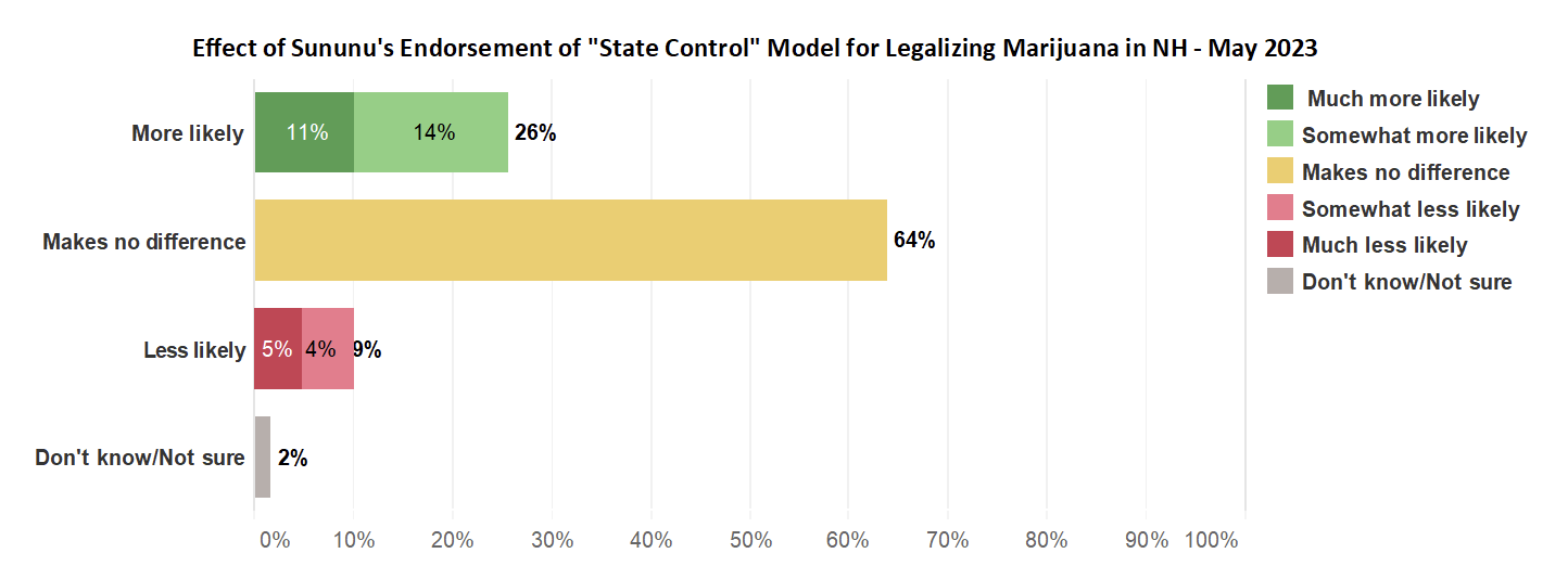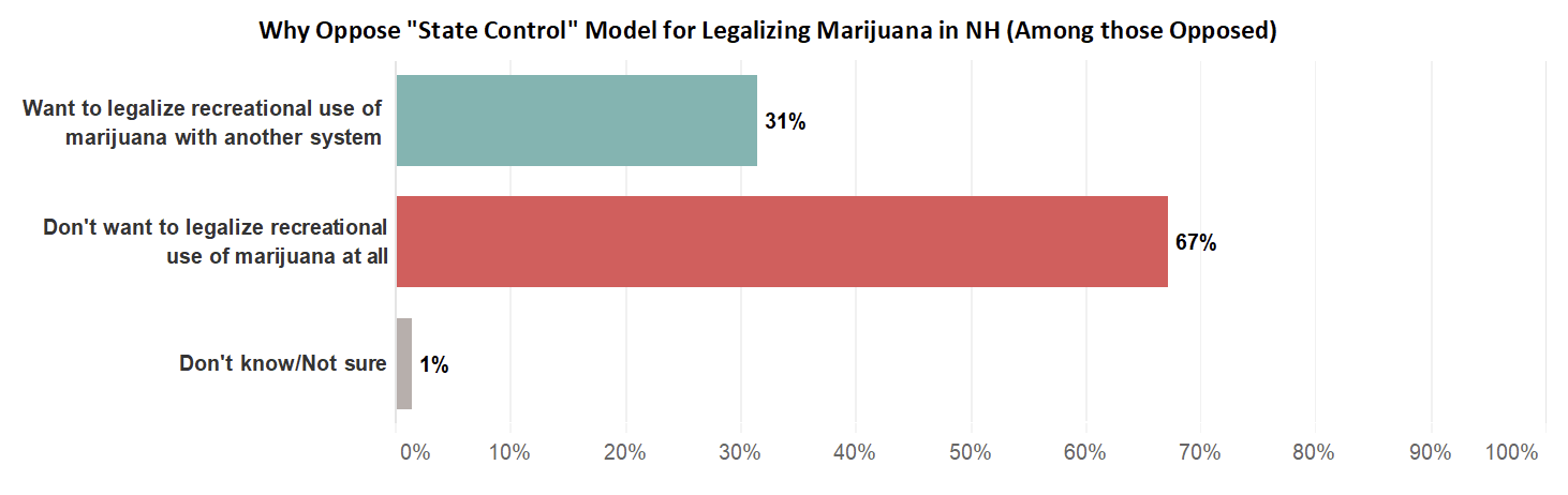 Of those surveyed, 3-in-5 said they would support a “state control” model for legalizing marijuana in New Hampshire, an approach that Gov. Chris Sununu recently indicated he would support.