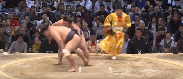 Takakeisho defeated Myogiryu, climbing to 7-1.ย Takakeishoโs victory came through a hikiotoshi, taking advantage of Myogiryuโs overzealous tachi-ai, stepping aside to provide a downward movement to move Myogiryu toward the edge of the dohyo. Another gentle push provided all that was needed to seal the win.