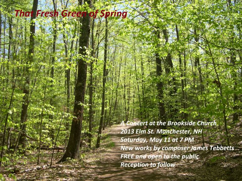 A Manchester native, Mr. Tebbetts began his own musical journey as an adult student. Now at the age of 73, he composes chamber works for winds, strings, voice, and piano. “That Fresh Green of Spring,” is Mr. Tebbetts fifth concert featuring his original compositions performed by professional musicians, including Manchester Community Music School faculty members.