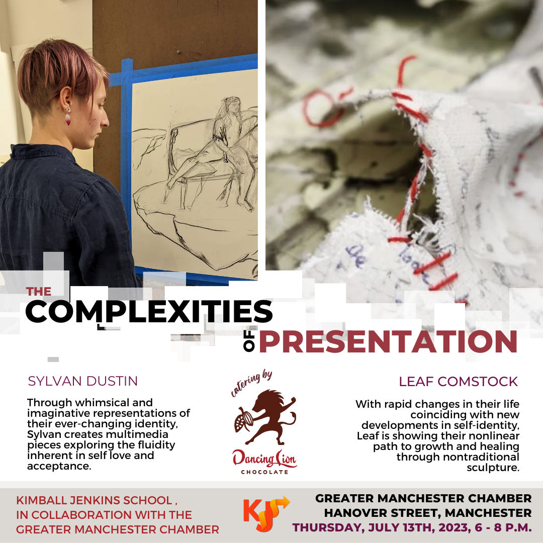 Kimball Jenkins is an arts and cultural center which exists in a unique and amorphous space celebrating multitudinous partners, artists and advocates who actively and historically invest their innovations and resources into the health and cultural exceptionalism of New Hampshire. The Greater Manchester Chamber has partnered withย Kimball Jenkinsย to curate a satellite gallery featuring a myriad of diverse artists, as a step in ensuring a more inclusive and desirable future for New Hampshire. Youโll continue to see rotating art installations in the Harvard Pilgrim Health Care Boardroom at the Greater Manchester Chamber, located at 54 Hanover Street, Manchester, over the course of the next year.