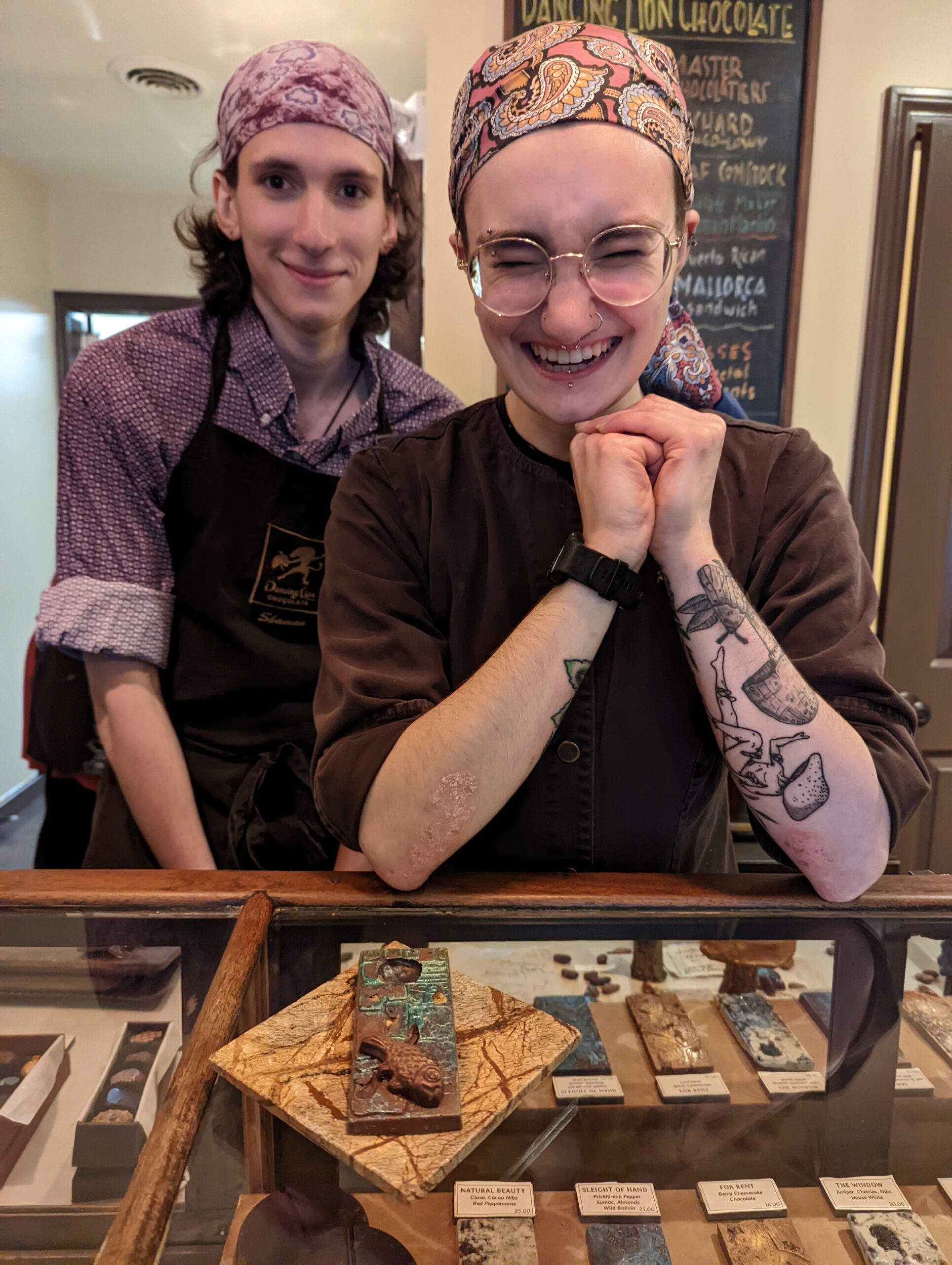 Leaf Comstock: With rapid changes in their life coinciding with new developments in self-identity, Leaf is showing their nonlinear path to growth and healing through nontraditional sculpture.