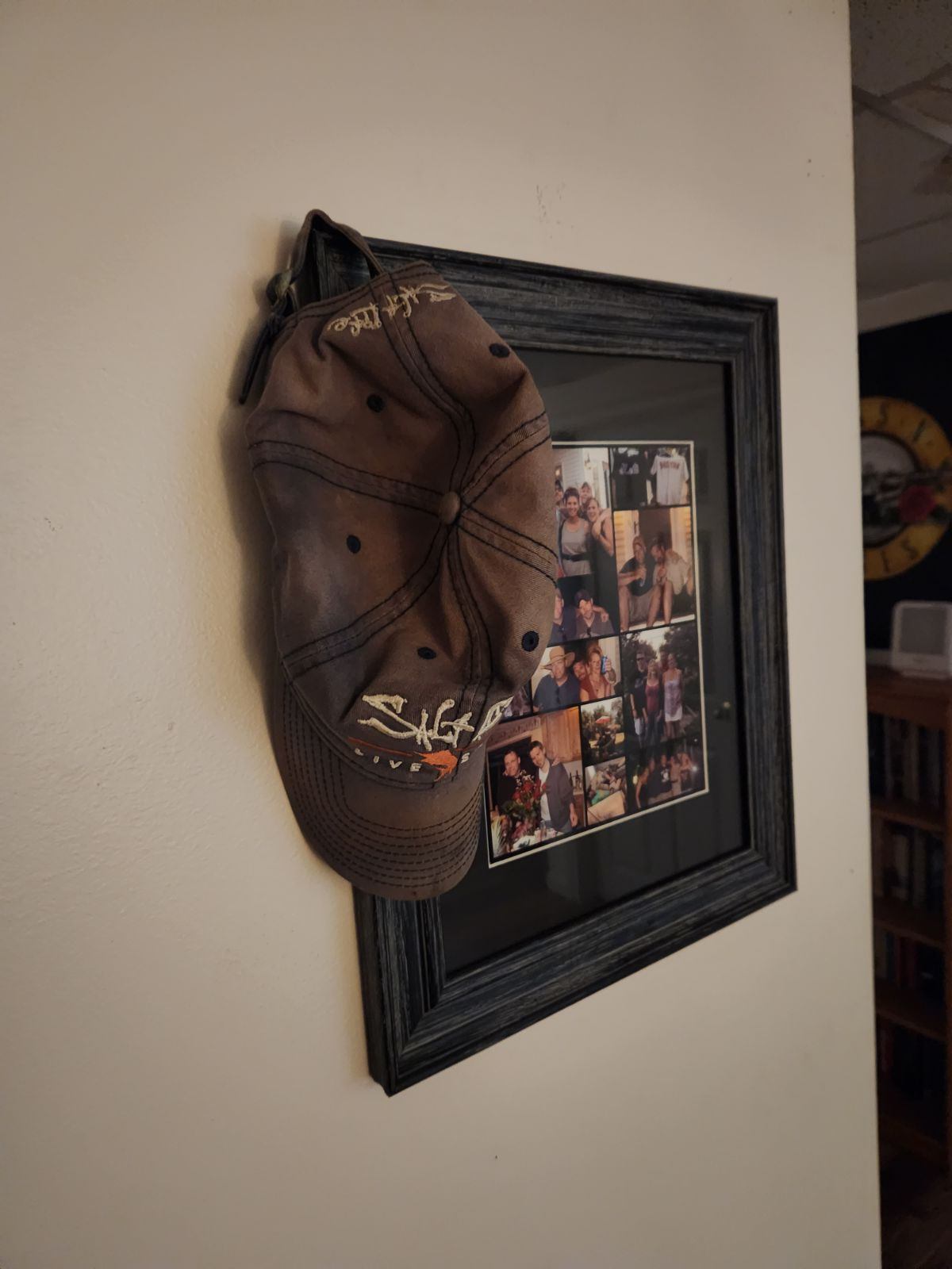 In my basement, there’s a collage of pictures of The Captain and me that my stepdaughter put together, and from the corner of the frame hangs one of The Captain’s battered baseball hats. Some days, I look at those pictures and that hat and I know that The Captain is never coming back.