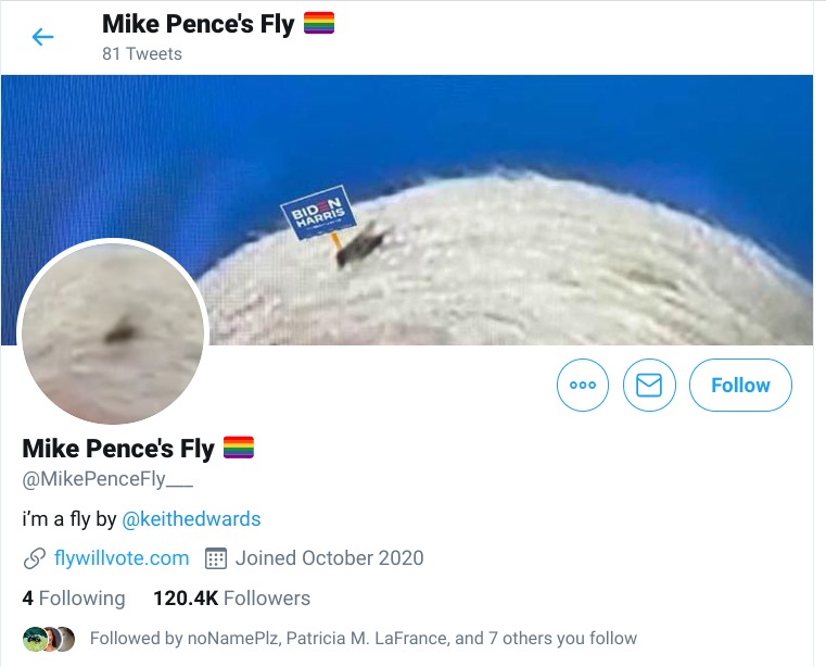 I backpedaled from the television, taking off my glasses and squinting at the screen. Then it dawned on me. โHoly [expletive]! Does Mike Pence have a fly on his head?โ I asked.