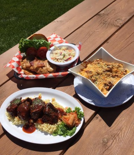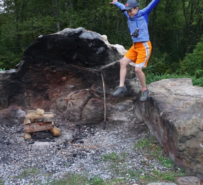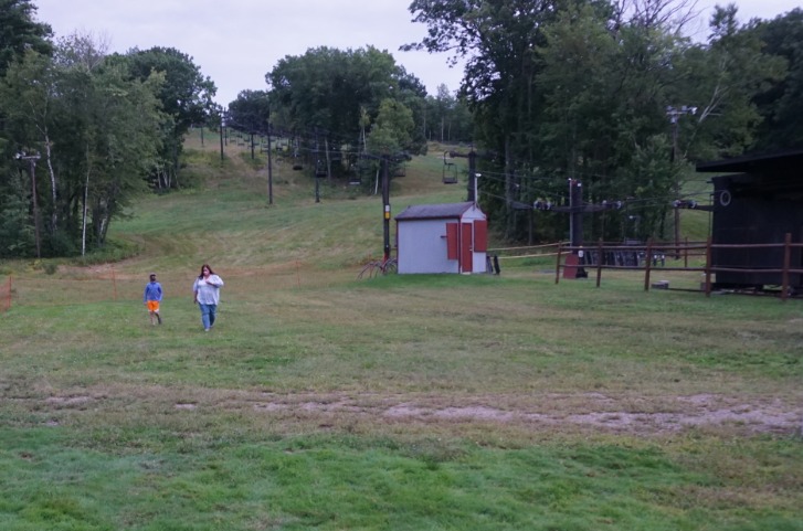Kids were horsing around on the grass without a care in the world. (Management encourages families to partake.) A mother and son, Karen and Sawyer Brown, were just returning from a short hike up the ski hill while waiting for their main course to arrive when Sawyer spots some boulders to explore. (I had to introduce myself.)